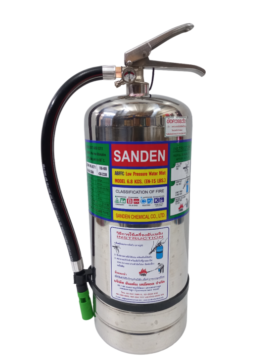 รายละเอียดผลิตภัณฑ์ ชนิดเคมีสูตรน้ำยา (SD ABFFC ABCK Low Pressure Water Mist UL Listed) ถังดับเพลิงแบบยกหิ้ว เป็นน้ำยาสะอาดตัวน้ำยาไม่ทำลายชั้นโอโซน เป็นมิตรต่อสิ่งแวดล้อม ไม่เป็นอันตรายต่อระบบการหายใจและสามารถยับยั้งการเกิดก๊าซพิษ สามารถเป็นสารทดแทนฮาลอน (BCF) สะอาดและมีประสิทธิภาพสูงมาก